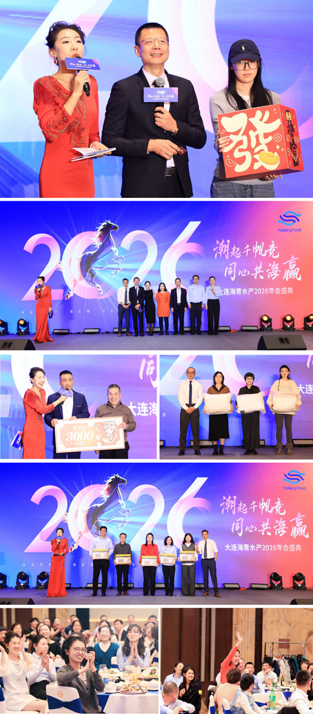 当渤海湾的晚风裹挟着新年的期许掠过宴会厅,当欢声笑语与奋进誓言在夜色中久久回荡,“潮起千帆竞 同心共海赢”大连海青水产2026年会盛典在温情与激昂中圆满落幕。这一夜,我们回望二十载风雨兼程的峥嵘岁月;这一夜,我们凝聚千人同心的磅礴力量;这一夜,我们锚定2026年二十周年庆的关键节点,誓要在水产行业的蓝海中续写更壮阔的篇章!